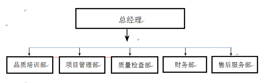 公司實行總經理負責制,實行項目專業化管理。通過總經理辦公會議決定公司重大事項。公司設總經理、辦公后勤部、財務部、項目管理部、質量檢查部、售后服務部、品質培訓部。